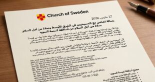 أصدر أساقفة كنيسة السويد بياناً رسمياً للتضامن مع شعوب الشرق الأوسط والدعوة لوقف العنف العشوائي وإرساء قيم السلام والعدالة، وهذا نص الرسالة: نحن أساقفة كنيسة السويد، ننظر ببالغ القلق والحزن إلى تصاعد العنف العشوائي المتزايد في الشرق الأوسط. إن الشعوب في الدول المتضررة هي في صلواتنا، وتتجه أفكارنا بشكل خاص إلى الأطفال المجبرين على العيش في ظل القلق والصدمات. لقد …