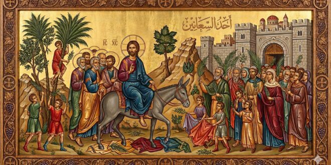 9 اِبتَهِجي جِدّاً يا بِنتَ صِهْيون وآهتِفي يا بنتَ أُورَشَليم هُوَذا مَلِكُكَ آتِياً إِلَيكِ بارّاً مُخَلِّصاً وَضيعاً راكِباً على حمارٍ وعلى جَحشٍ آبنِ أتان. 10 وأَستَأصِلُ المَركَبَةَ مِن أَفْرائيم والخَيلَ مِن أُورَشليم وتُستاصَلُ قَوسُ القِتال ويُكَلِّمُ الأُمَمَ بِالسَّلام ويَكونُ سُلْطانه مِن البَحرِ إِلى البَحْر ومِنَ النَّهرِ إِلى أَقاصي الأَرْض. 11 وبِدَم عَهدِكِ أَنتِ أَيضاً أُطلِق أَسْراكِ مِنَ الجُبِّ الَّذي لا ماءَ فيه. 12 إرجِعوا إلى الحِصنِ يا أَسْرى الرَّجاء اليَومَ يُخبَرُ أَنِّي أَرُدُّ علَيكِ ضِعفَين.