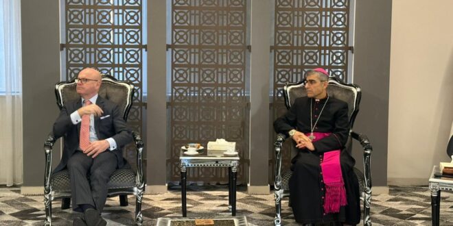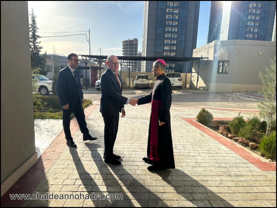 استقبل سيادة المطران مار أزاد شابا السامي الوقار، راعي أبرشية دهوك الكلدانية، يوم الإثنين الموافق 16 شباط 2026، سعادة القنصل العام الإيطالي في إقليم كوردستان السيد تومماسو سانسوني، وذلك في مقر دار المطرانية في دهوك.