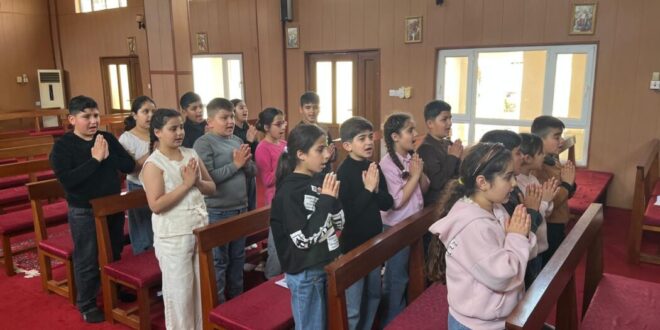 برعاية سيادة المطران مار أزاد شابا السامي الوقار، أقامت اللجنة العليا للتعليم المسيحي الأبرشي في أبرشية دهوك الكلدانية، لقاءً خاصاً لتلاميذ التناول الأول والتعليم المسيحي للمرحلة الابتدائية، وذلك يوم الجمعة الموافق 10 نيسان 2026 في قرية هرماش ناحية اتروش دهوك
